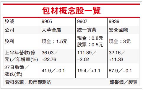 大步填權息 包材概念股一覽