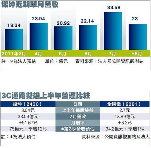 原先以為8月營運是第3季裡較「艱困」的1個月,不過,燦坤副總嚴文宏昨日表示,自上周末起包括桌上型電腦、筆記型電腦、翻譯機等開學季用品銷售已明顯增溫,預期本周末更接近開學日期業績表現會更好,因此對於8月營運「相當樂觀」。