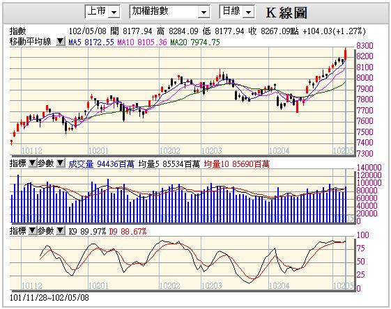 盤勢重點: 今年第1季財報公布已進入尾聲,部分科技業、出口業、金融業和景氣循環產業等表現,優於去年第4季和去年第1季。預估今年整體企業獲利成長率將接近20%,尤其第3季電子類股將步入旺季,有新產品推出的企業獲利,可望進一步推升。