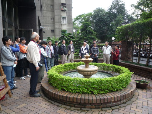 當天一早就有各社區的代表到達,可見大家都很希望自己居住的社區能越來越好,等到來訪的人數到齊,我們便先讓他們參觀我們社區的庭園設計,綠意盎然的各式各樣花草,加上四十棵精心栽種的羅漢松,形成社區最大的特色,還有迎賓大道上一個巨大的石雕十分壯觀,象徵太陽升起,光茫四射生生不息。