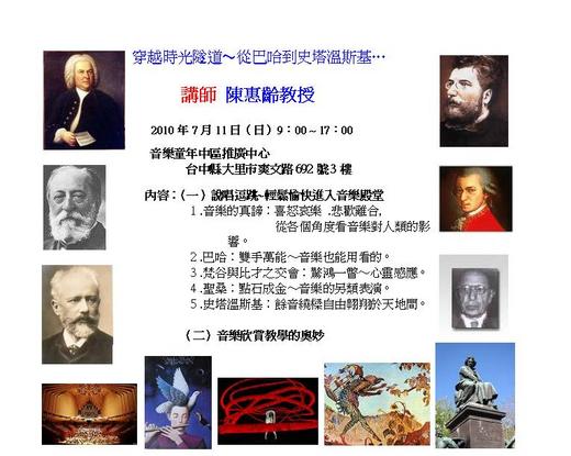 這個暑假應邀到台中、高雄擔任特別的講座,每一場六小時,讓你一窺音樂的奧妙與進入創意音樂教學的殿堂。