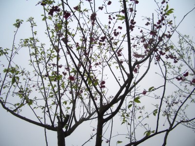 我們就在農曆大年初三(2月20日)花季的第一天早上,搭乘捷運到劍潭站,再轉陽明山花季專車,就這樣和一群志同道合的賞花人士一同到那風光明媚的陽明山,還好當天沒有下雨,但是天氣陰陰的,不久整個山區都被濃濃的霧所籠罩,一片白茫茫,好像每一朵花都披上白紗,別有一番風味,讓我想起白居易的『花非花,霧非霧,夜半來天明去,來如春夢不多時,去似朝雲無覓處。』我輕輕的唱起那優美的旋律,那是由