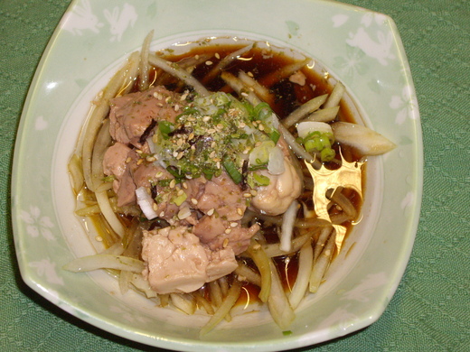 食譜二:和風洋蔥鱈魚肝〈三人份〉 超級市場可以買到各種油漬鱈魚肝,丹麥、挪威、日本都可以,便宜未必品質差。魚肝一罐、洋蔥半顆、青蔥少許。洋蔥切絲泡冰水半小時去辛辣味,然後以台灣醬油、和風醬油及味霖〈比例約為1:1:1.5可以隨個人喜好調整〉調和之綜合醬汁醃漬20分鐘。醃漬後的洋蔥為底,舖上一罐鱈魚肝,淋上少許罐頭裡的油,灑上細青蔥,再加上小小朋友喜歡灑在白飯上的海苔絲或類似材料即可。夏日消暑配啤酒之绝品小菜,自己DIY比日本料理店省很多,而且吃的過癮。