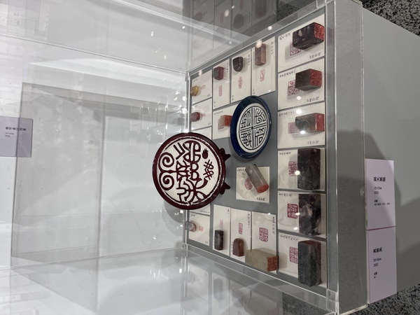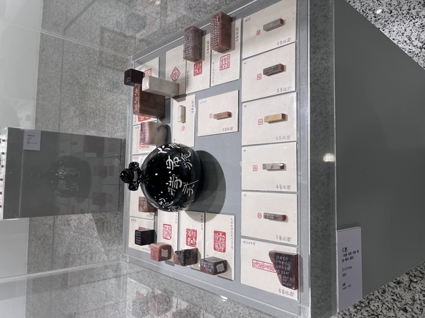 他的刻印功夫砥礪了數十年,也在台藝大開班授課。篆刻,從各種石材的運用、邊角料的物盡其用,一直到不同材質的嘗試,以及在瓷盤陶罐上的曲面創作。