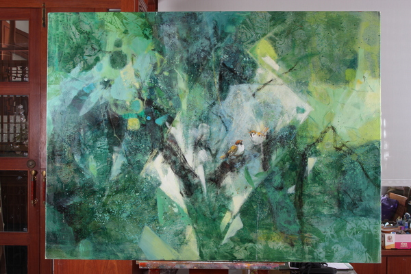 正當我站在畫前,努力要回想連結起,導訓時老師的說明和眼前的畫面時,主管一句話有如醍醐灌頂:老師的畫,擺在咖啡廳很適合呢!她的顏色看起來就很舒服。