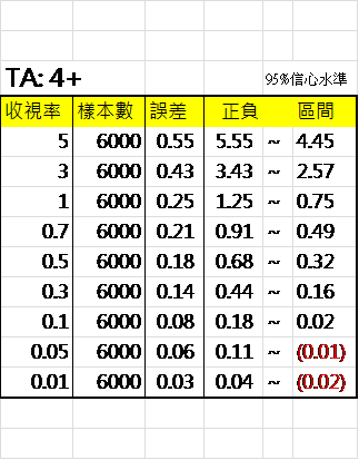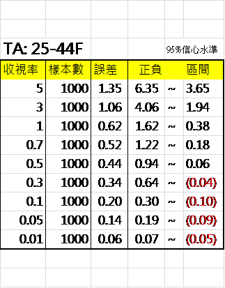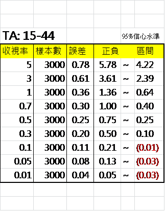 收視率與抽樣誤差對照表