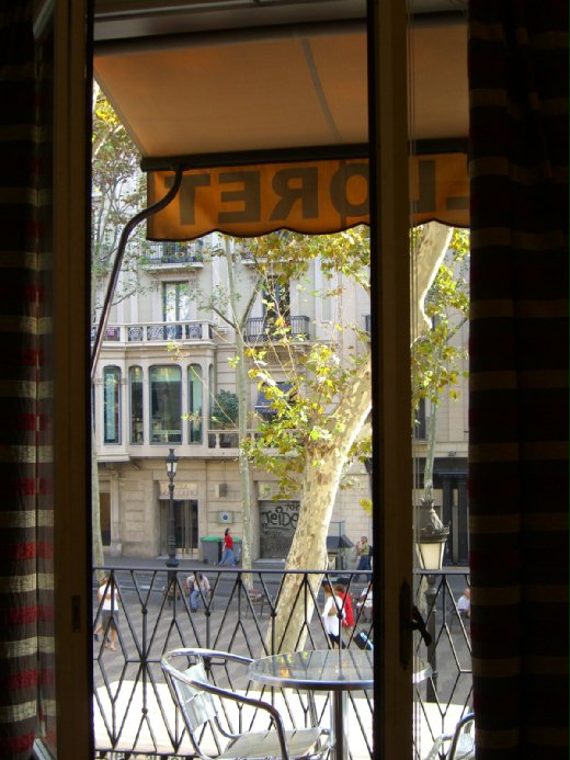 考量到昨晚大家都累斃了,今日的集合時間便訂於AM10:00。只是沒想到經過一晚的好眠及時差關係,小驢子跟水獺寶寶居然AM7:00左右就醒來再也睡不著了。 「既然如此那就起床吧!」 此時太陽公公都還沒露臉呢!盥洗整裝後,將近AM8:00,天色慢慢亮起,於是我們決定去外面走走,享受一下悠閒的早晨。到了大廳才發現葭已經在陽台上邊啃著蘋果(旅館提供的,但是聽說很酸)邊欣賞早晨的蘭布拉斯大道了呢!