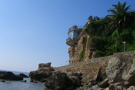 緊接著我們就來到了內爾哈著名的景點—歐洲陽台,它是位於卡拉毆達海灘上的一個瞭望廣場,在九世紀回教統治時代,是用來監視來自海上入侵者的要塞。由這裡往地中海看去,可以看到全歐洲最美的地中海景色,所以有歐洲陽台的美譽。大概因為是觀光景點的關係,雖然這裡才歷經了豪大雨的折騰,但是經過昨晚及今早清潔隊員的全力整理,已完全看不出被水肆虐的痕跡,真是佩服他們的效率!而歐洲陽台下的卡拉毆達海灘更是充滿了作日光浴及戲水的人們,好不熱鬧!還沒摸過地中海的我們,當然也不會錯過這個好機會啦!只是~~~小驢子和水獺寶寶穿的是球鞋,不方便穿脫,所以就沒下海啦!只有用手戲水…… 不過,沒想到外國的沙灘並沒有想像中的乾淨,也是充滿了垃圾,甚至還有口香糖,而且居然跟上了小驢子的球鞋,哇哩咧!