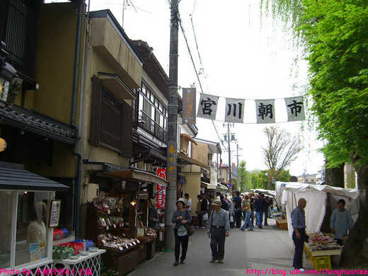 早上享用過無限量供應麵包及販賣機的飲料後,一行六人就朝著宮川朝市前進啦!宮川朝市是高山著名的朝市,距離高山駅約十分鐘路程,每天早上6:00開始營業直到中午,非常受到家庭主婦及觀光客的喜愛,總是擠滿了人潮。