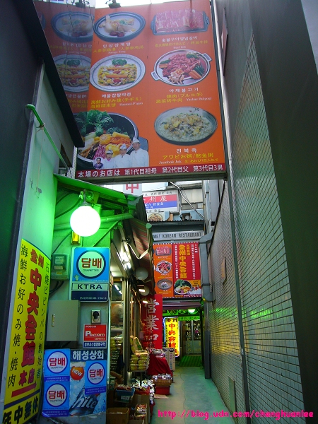首先登場的就是『全州中央會館』本店,它隱身在明洞的一個小巷中,是一間很有名氣的店,幾乎每本旅遊書都會推薦;不過店門口綠色的燈光感覺很詭異……