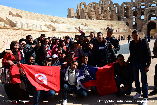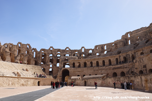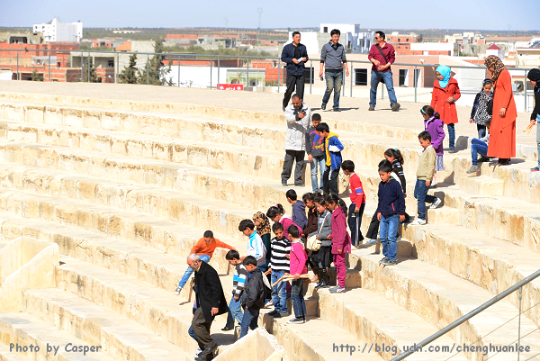 今天的第一個行程是前往位於中部,在開羅安《Kairouan》東南方的伊爾捷競技場《El Jem Amphitheatre》。它是北非規模最大、保護最好的古羅馬競技場,興建於西元三世紀,可容納35,000名觀眾,是格鬥士與動物們的血腥角力場所;目前每年夏季舉行著國際音樂節,於1979年登錄為世界文化遺產。
