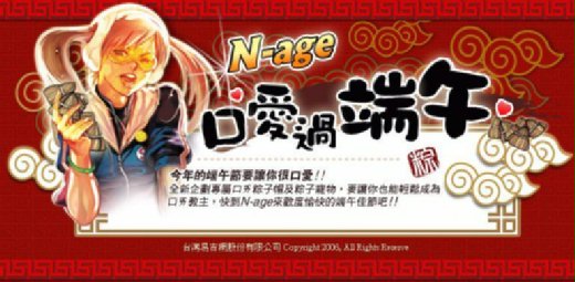 動作冒險的「N-age」,自5月24日起至6月7日,端午特別企劃要讓玩家很口ㄞ!活動期間,遊戲規劃蒐集頑皮粽換物品的獎勵,包括情侶對戒、口ㄞ粽子帽以及粽子寵物等。最先換到「粽子寵物」的前六名玩家,還將獲得實體的「喜滋酷將公仔存錢筒+漫畫冊」一組。其中,「口ㄞ粽子帽」屬性為智力+12、格檔+10、戰略+8、跑速+12,「粽子寵物」屬性為SP+100,相當吸引人。端午特別企劃部但讓玩家在N-age世界裡輕鬆成為的口ㄞ教主,還有實體限量獎品大放送,活動結束後,尚未兌換的「頑皮粽」還將自動變成「三明治」,供玩家補充體力!