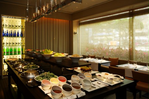 Aqua Lounge複合式的餐廳型態,中午時段提供既有的無國界「有機輕食沙拉吧」