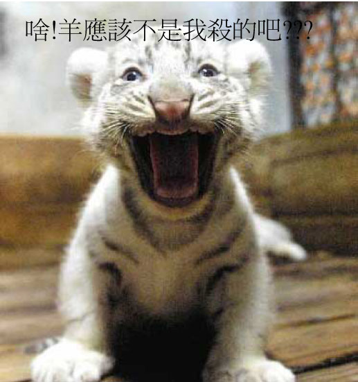 這兩天看台灣新聞老是在報這羊兒被咬死的事件,媒體還當起柯南緝兇,讓人覺得台灣真是個太平國家,一隻老虎(or狗?)咬死羊隻可以搏那麼多版面,可見台灣治安很好,沒有其他更需要關注的社會案件~
