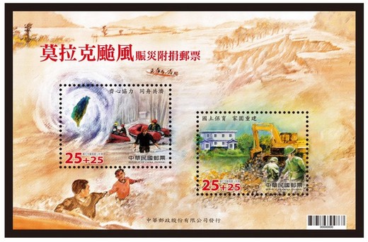 第二、前陣子,中華郵政發行「莫拉克颱風賑災附捐郵票」,我掏了一萬大洋去買,這套郵票有一半的金額是交給內政部去運用,至少,我也為這次的風災盡了一點非常微薄的心力。雖然,搞得我薪水透支。