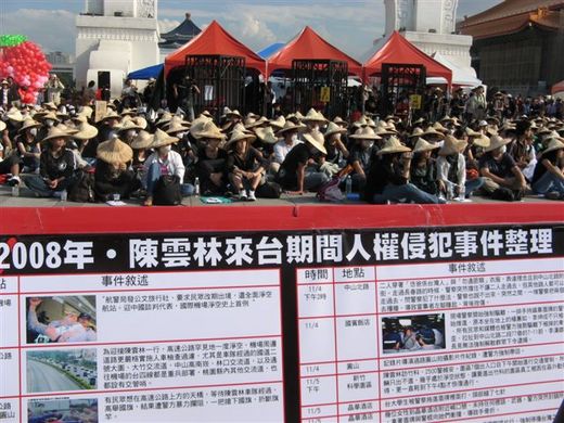 更甚者,在陳雲林會長來我國的這段期間,執政者更加露骨地表現他的傲慢。於是我們感到懼怕,所以決定要站出來。