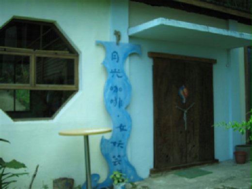 還有一段對我旅遊很好的釋疑,就順著在那個「阿美族發源地」石碑旁的指引,有個月光小棧,想是山中咖啡屋,本想去喝一杯咖啡,在台東開車,最難過的是只有一點,沿路沒看到喜歡的咖啡屋可以落腳,屏東海岸線就好多了,在台東開車,我還哼著自創的歌詞「長路迢迢日漫漫,想喝咖啡找不到」。而結果到了「月光小棧」,只有兩間鎖了門看起來是藝展的屋子(第二張照片),看這篇介紹文才知: