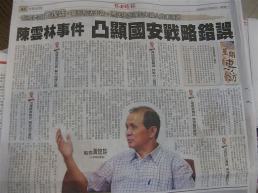 星期專訪/監委黃煌雄:陳雲林事件凸顯國安戰略錯誤http://n.yam.com/tlt/politics/200905/20090525626630.html