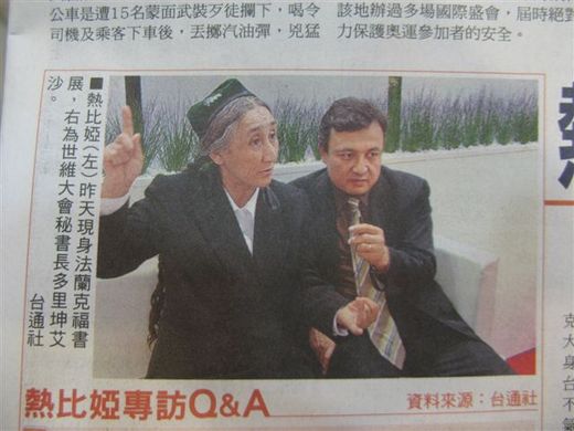 熱比婭現身法蘭克福國際書展,挑動台灣與中國的敏感政治神經。熱比婭昨出席由人權組織「受威脅人民協會」(Society for Threatened People)舉辦的研討會時表示,維吾爾族的語言與文化正面臨滅絕,不僅和平示威被打壓,連維護傳統的維族人也被當成分離與恐怖份子。
