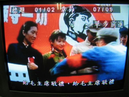 了草結束,對了,妳要慶幸沒生在大陸和在文革年代結婚,《活著》電影中,告訴妳,那時聘禮是惡心的毛澤東像和紅小書(以下第一張照),結婚時拍個照要向無聊的毛澤東敬禮(以下第二張照),難怪這部電影當時被大陸禁演。