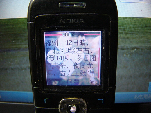 我皮膚不好,早年苦於一到冬天,就發癢,不洗澡又很痛苦,洗完澡抹上保養霜,連玻尿酸都用上了,還是不管用,來到福州,發現人家電信業者,做的比台灣好太多了,每天發則簡訊,預告明日天氣與溫度,讓客戶心理有底,另外 加個貼心小語,例如 嚴冬宜早睡遲起,強調古人說:早睡以養陽氣, 遲起則是固陽精。