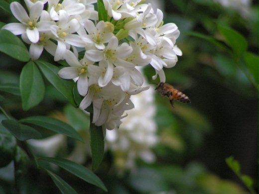 其中幾張剛好遇到蜜蜂來採香,小小蜜蜂,在花間穿梭,也很忙碌,根本不理會我這個拿相機的女人,於是蜜蜂,七里香,和半百女人,在社區角落邂逅了十來分鐘,彼此各有姿勢,停格成一幅有趣的畫面!