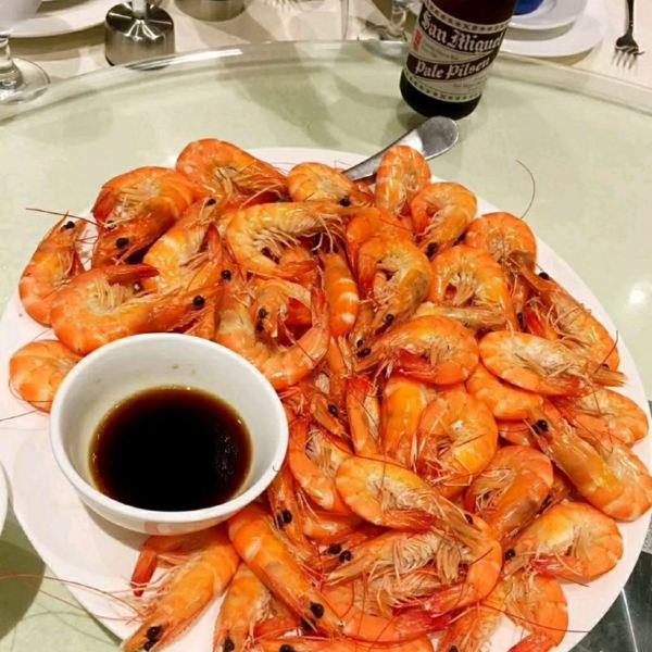新鮮螃蟹!跟一大盤蝦子,當天真的吃得很撐,他的芒果汁也很不錯~