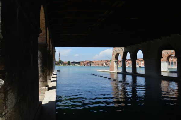 中場休息,戶外有以前威尼斯的修船塢,景色美的冒泡,室外景觀雕塑令人流連。