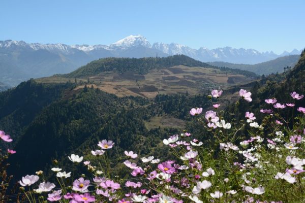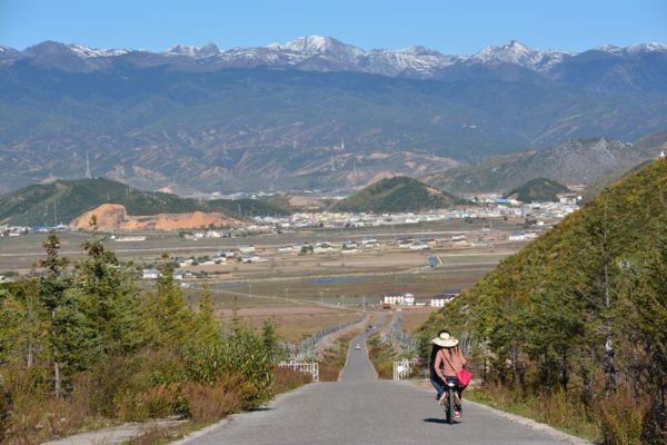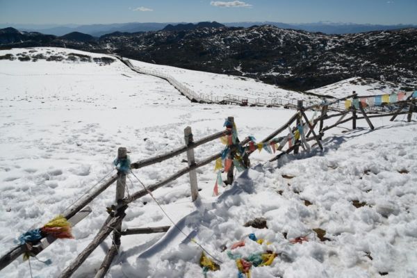 經小中甸草原,進入藏區。一路令人陶醉的藏區高原風光,雪山、草甸,藍天、白雲,藏族村莊、五顏六色的草原,成群的牛羊,耕作的藏民等等,構成了一幅幅香格里拉畫面。雲南省香格里拉縣,原為中甸縣,因與美國小說家詹姆斯希爾頓的小說《消失的地平線》中所描繪的永恆和平寧靜的土地相仿,而於2001年改名為香格里拉。位於滇、川、藏大三角區域,有獨特的雪山、峽谷、草原、高山湖泊等景觀,居住著以藏族為主的共13個少數民族,是自然與人和諧相處的“烏托邦”。