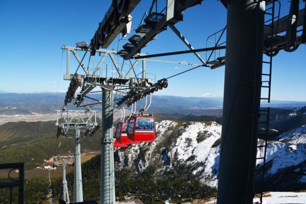 前往藍月山谷石卡雪山景區,有著雲南最長的脈動迴圈纜車。搭乘索道,前往亞那欽波牧場(海拔高