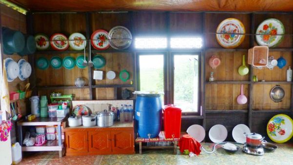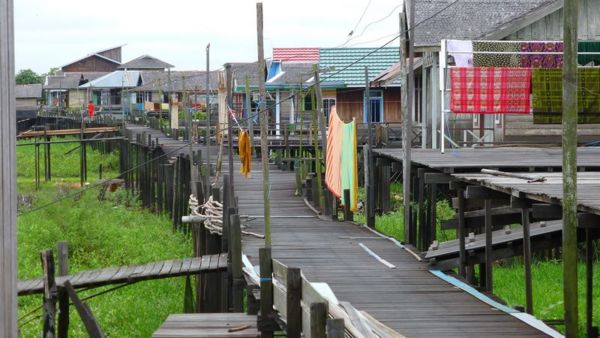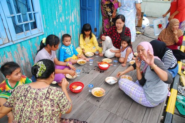 帶團印尼,在東加里曼丹江與運河是人們進行日常生活的場所,也是所有經濟活動的中心,水上交通很發達。當地人生活在沿著江叫做Lanting的樹或用大竹子作成的水上屋,住民的90%以上是穆斯林人,我們乘坐摩托舢舨船沿Ohong河拜訪Kutai族的Janturm水上漁村,徵求同意後進到高腳木屋,驚訝發現回教家庭真是乾淨的不得了,連廚房都餐具洗的一塵不染,放置的有條不穩,他們都非富裕人家,看得我們慚愧異常。