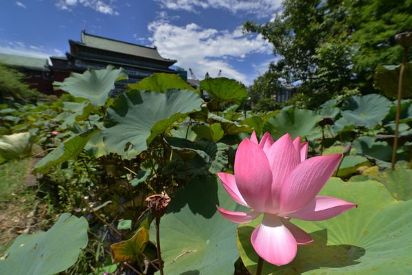 炙熱的艷陽天中賞植物園近尾聲的荷花