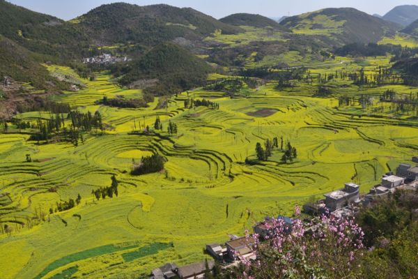 雲南羅平油菜花每年2至3月,連片的20萬畝油菜花在羅平壩子競相怒放、流金溢彩,綿延數