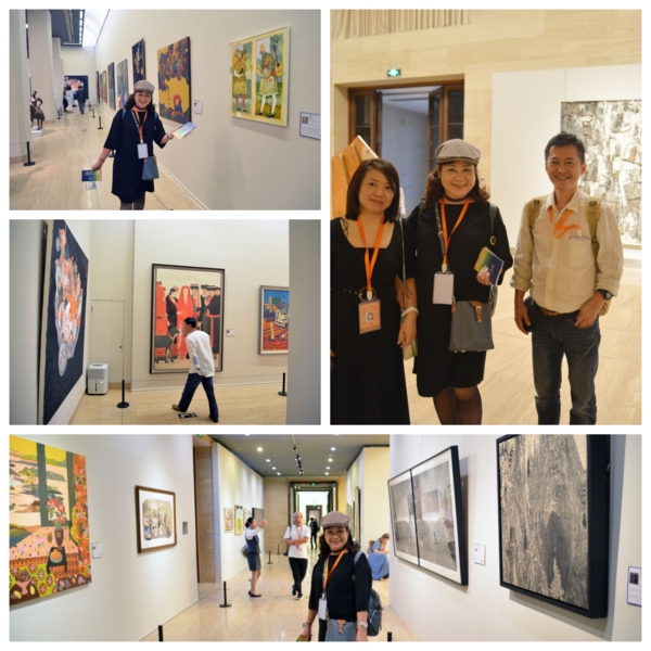 大會作品畫冊664頁非常沉重,展覽現場與畫家及工作人員合影