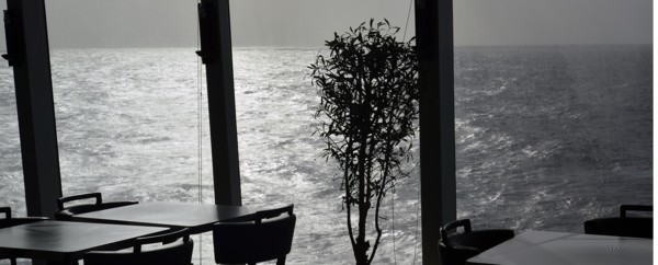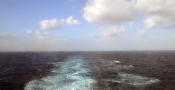 10/13開始有些風浪,一夜胃有些脹氣,聽到船艙偶有摩擦聲響,沒有熟睡。第二天清晨,仍是晴天,海上風很大,游泳池及高處用纜繩圍起來不開放,以免危險,豪華套房與陽台艙恐怕都無法輕鬆躺在陽台欣賞海洋了,小浪花出現了。吃早餐是秩序井然,純台灣客水準很好,偶而聽到廣東話,居然香港客為躲避港獨鬧事飛到台灣玩。開始對義式風格有好感了,食物精緻度不錯,我尤其對哈密瓜的新鮮口感讚揚,多吃了些。一望無際的太平洋,景色迷人,我就無所事事,純想望吧。