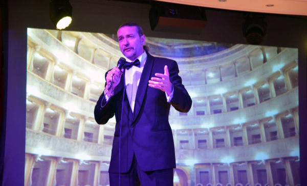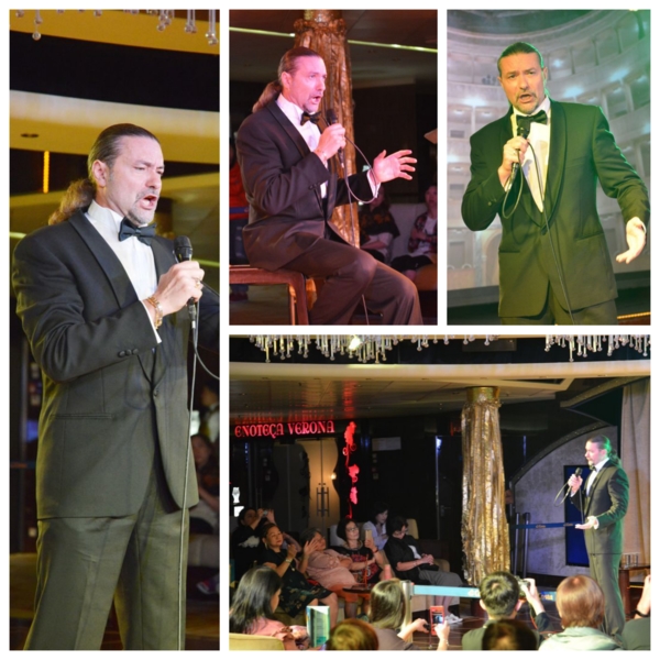 接著趕到八樓義大利廣場大廳,聆聽義大利男高音喬凡尼Giovanni Cucuccio演唱約九首義大利民謠及歌劇,人又高又帥很像007史恩康納萊,台風極佳,唱的全場非常嗨,聲音宏亮、音域寬廣無暇玼,歌曲家喻戶曉,其中很多觀眾也不覺琅琅上口,完全職業聲樂家水準,架勢迷人,掌聲不斷,中場還坐下秀了兩首中文歌,是鄧麗君的「甜蜜蜜」與「月亮代表我的心」,後來聽娛樂總監說他只學了十天,咬字稍有不準卻更能傳神,大家簡直都站起來了,四面八方聞聲趕來,連船上人員都圍過來了,太受歡迎了,我坐在第一排,好像坐在國家音樂廳第一排,很少鼓掌的我也吼叫擊掌,出乎意外,今晚超值,所有團費都賺回來了。