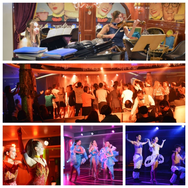 船方之後又安排九樓大廳,現代美式歌舞秀,熱鬧非凡,近11點又在八樓大廳開始金色派對DISCO集體下場舞會,至此我老人家沒太多興趣就退場,回房間整理今日一大堆照片,記錄所見所聞,直到半夜一點多才洗澡上床睡覺,今天太豐富了。