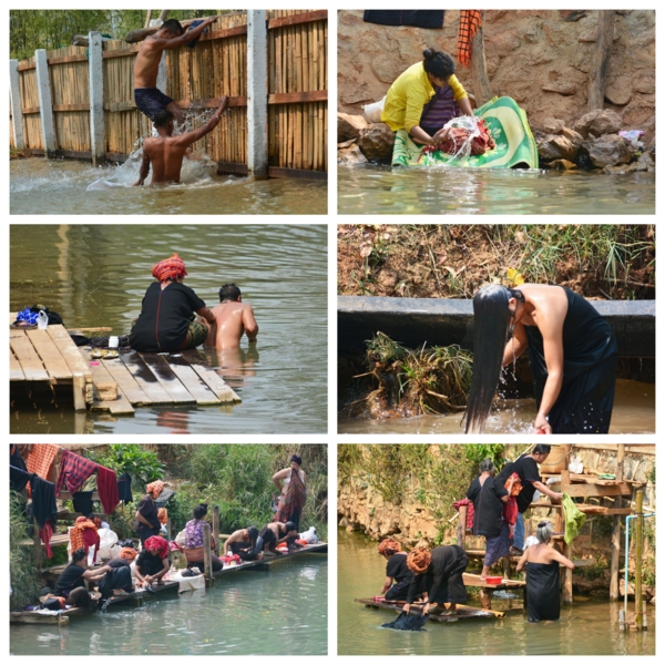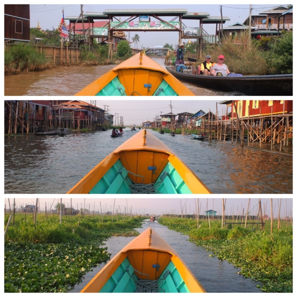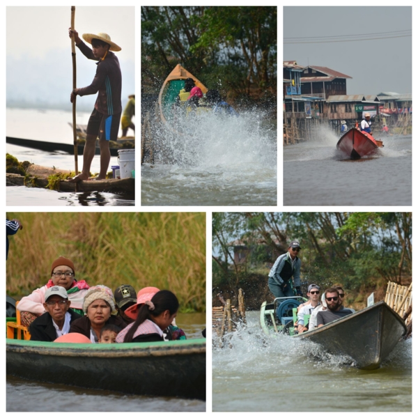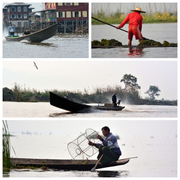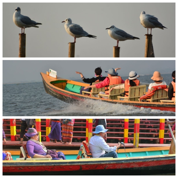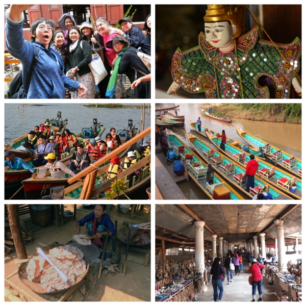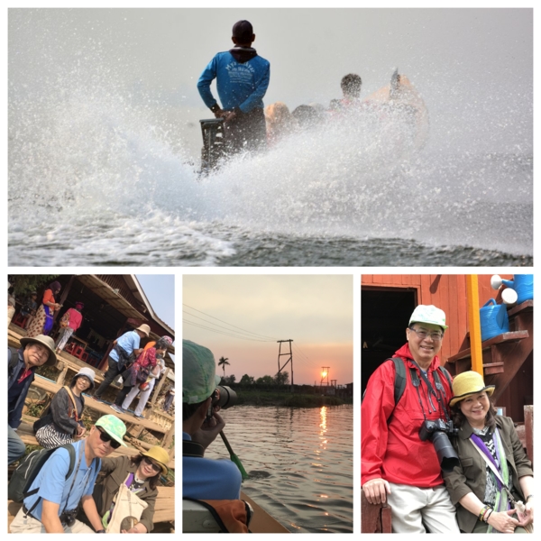 第六天2/27,清早就大遊覽車到有名的茵萊湖Inlay lake湖邊,茵萊湖海拔高度884公尺,佔地面積116.3 平方公里,約15個日月潭的面積,平均深度1.52 公尺,狹長型的湖,南北約22公里,東西約11公里。每五人搭一艘快艇,我們一行約8艘,船夫非常熟練的操槳,與吳哥窟洞里薩湖感覺差不多,但它長又很多分支,連同各景點行程,我們整整一天非常豐富。沒想到清晨極冷,加上快艇吹風,體感在10度以下,船上備有救生衣雨傘及毛毯,聊備一格,這與我們住的度假村一樣,都算高山區,溫差在20度以上,下午就熱到34度以上,以後到緬甸一定要注意。茵萊湖上有大小近200多個自然村落,相互之間有大小水道相連,家家戶戶有船,只見男的日出而作,湖就是他們的生財之地,捕魚、撈水藻、種番茄、荷花。女的也會划船運物買菜,上學、探親都靠船來往返,歲處見停泊的碼頭。茵萊湖上的浮島有兩種,都是漂浮在水上的土地。當地人為了謀生,把湖上漂浮的水草、浮萍、藤蔓植物等聚集起來,覆蓋上湖泥,造成新的浮島。人們在大浮島上開出一塊塊細長的條田,種植瓜果蔬菜或糧食。浮島周圍魚群聚集,人們種地之餘,還可以捕撈魚蝦。