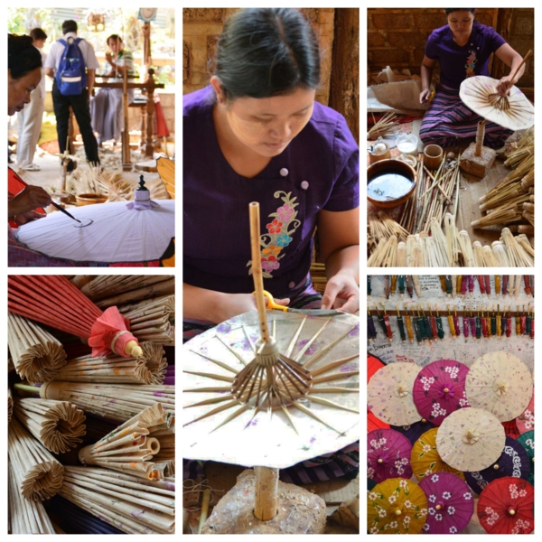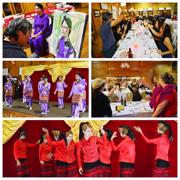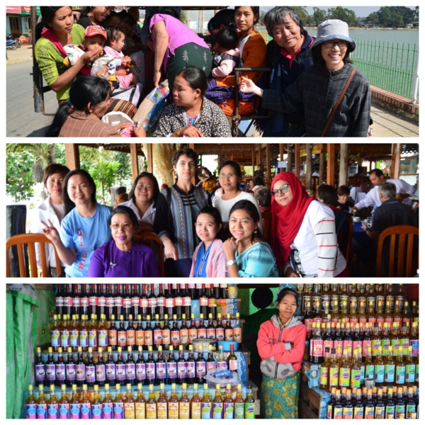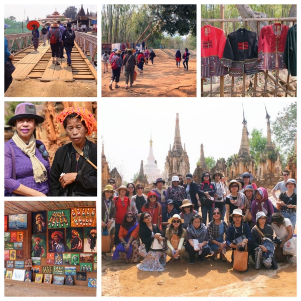 中途參觀一家搗碎竹子加入九重葛花的手操紙廠,不是用來寫字畫圖,用來做紙傘及手工藝,特別也好看。當晚在度假村舉辦聯歡晚會,又是一頓緬甸式大餐,還有民族歌舞表演,大家興奮起來,圍著場地拉著手跳起來,瘋的很嗨的不顧形象,反正只有我們,又不會吵到附近鄰居。鄭宏章人像出名了,Sanda會長也要畫一張,正好音樂伴奏又一張。賓主盡歡至深夜。
