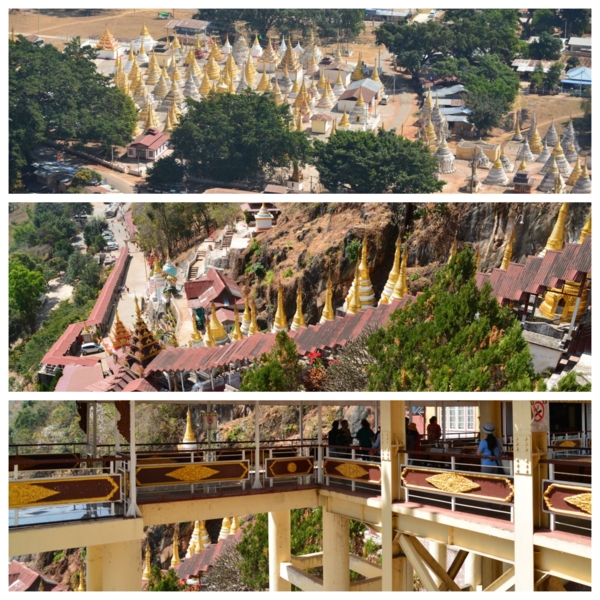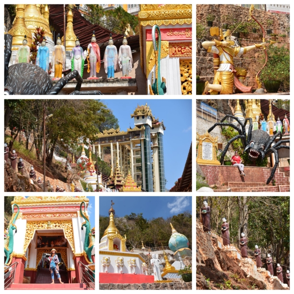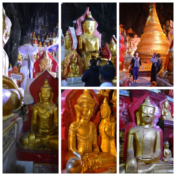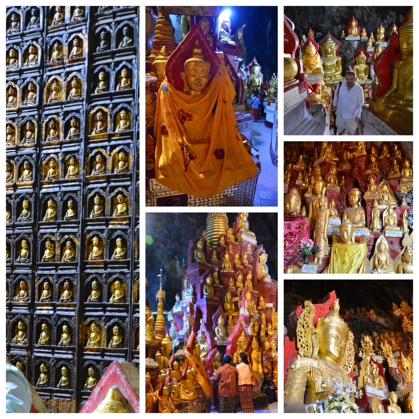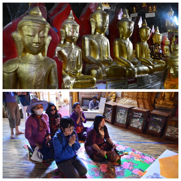 潘塔雅岩洞Pintaya Caves,位於梅勒區石灰巖山脊,是這國家最著名的佛教朝聖地與旅遊景點之一。從南到北共有三座石窟,目前只有南端的石窟可以進入參觀。賓德雅石窟最大的特色,就是裡面有8034尊金碧輝煌的佛像,在狹窄的岩洞蜿蜒上下的小路邊,皆由善男信女贈,每尊下方都有名牌,這些佛像型態各異、大小不一且風格獨特,連所穿的長袍也不同於緬甸其他地區,十分富麗堂皇,世上絕無僅有。關於石窟,在入口處邊坡,就有雕像顯示神話傳說,相傳曾有7名美麗的公主在湖中洗澡時,被一隻巨大的蜘蛛吐絲纏繞,並將她們困在石窟中,之後一位英俊的王子用弓箭射死蜘蛛,並救下了這7名公主。
