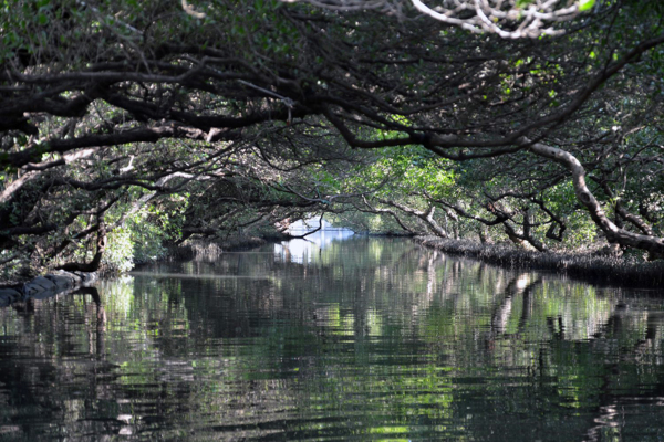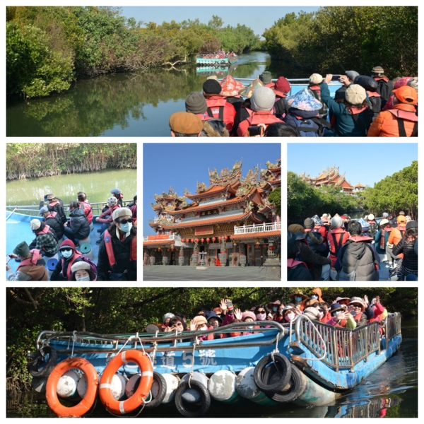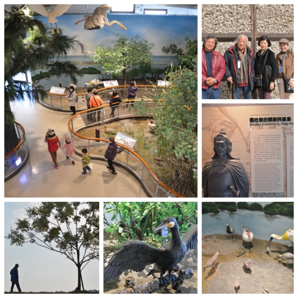 1月10日(日)09:30 搭船遊台江紅樹林綠色隧道,安平四草是紅樹林的故鄉,種類數量位居全省之冠,大眾廟後方排水道的紅樹林保護區,沿途可欣賞全省僅有的四種紅樹林五梨跤、水筆仔、欖李、海茄苳所構成的水上綠色隧道。沿途解說員嘴巴沒停的介紹,而船也沒停過,途中解說員不斷地喊那邊要低頭,以免被樹枝刮到頭!再到台江國家公園遊客中心暨行政中心園區,又稱「台江學園」,是座兼具生態與文化的鑽石級綠建築。保留既有魚塭地景,建築物以高腳屋型式立於水面之上,營造人與生態共存的友善空間,並運用各種建築巧思,達到節能減碳之成效,超美的異國景點,很具設計感,處處是拍照景點。