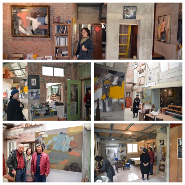 1月11日(一)09:30還是勞駕鄭宏章夫婦開車載我們,到台南有名的路邊攤體驗台南特有的新鮮牛肉湯,很過癮,此行也變美食之旅了,哈哈。再到台南安平郊區南方藝術聯盟張國信會長的工作室,他是建築設計出身,走向藝術創作,太太及姪子一起創作,工作認真,作品豐富,自建的透天工作室,天花板高度3.6公尺,空間寬敞,門口道路整齊。
