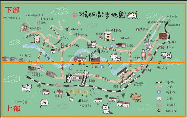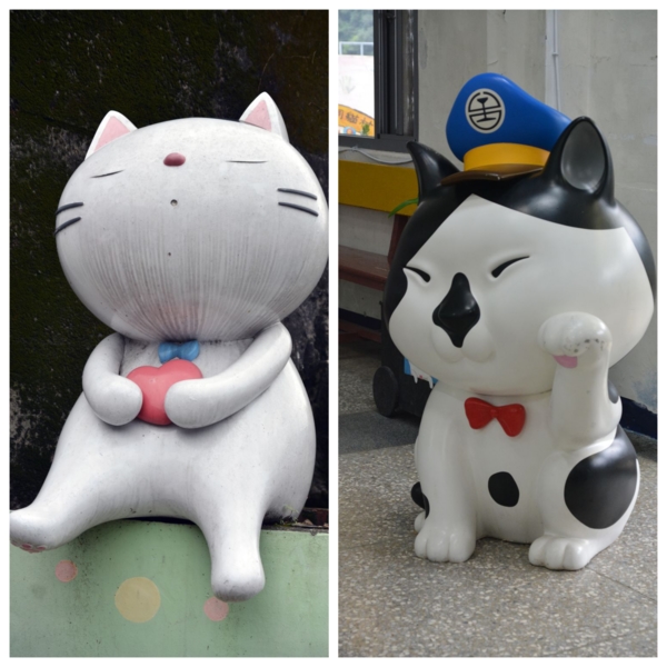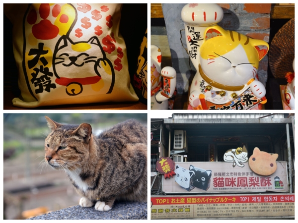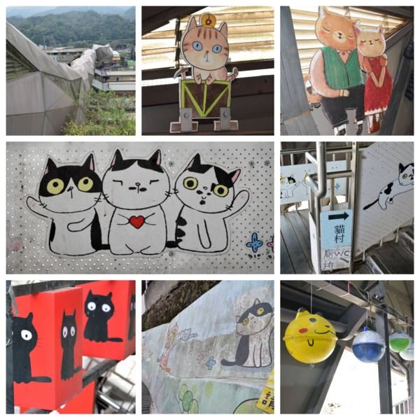 貓村一帶自早期便有許多貓咪棲息,透過愛貓人士們發起於2009年10月31日「有貓相隨,猴硐最美」的活動後,貓咪竟成為侯硐的象徵了。原先通往貓村的狹小老舊人行天橋被稱為貓橋,2013年3月30日新貓橋改造落成,結合貓咪及礦業等元素、富有童趣,外型意象是一隻貓,功能除原本連接光復里民進出聯外通路外,橋上更增加貓跳台,遊客可放置貓飼料餵食,為全台灣首例、全球唯一的「人貓共用天橋」,獲得工程金質獎。侯硐火車站,是個樸實的北迴線小站,站內並布置了可愛的貓站長,上坡路等都有貓卡通等圖案、貓燈籠、很完整的貓玩偶商店,非常可愛。在願景館外面有個礦工貓咪推著礦車,這個廣場當年的確就是瑞三煤礦的選煤場及鐵道,搭配貓村題材超上相的,從車站要到達貓村一定得經過貓橋,貓橋外型從遠處觀看,像是隻貓咪的身體,頭在車站的位置,而長長的貓尾巴則是圍繞在貓村的山坡上,曾獲CNN推薦為全球六大賞貓景點。此時的我對於安靜的貓,竟有一絲憐愛,貓其實蠻可愛的。