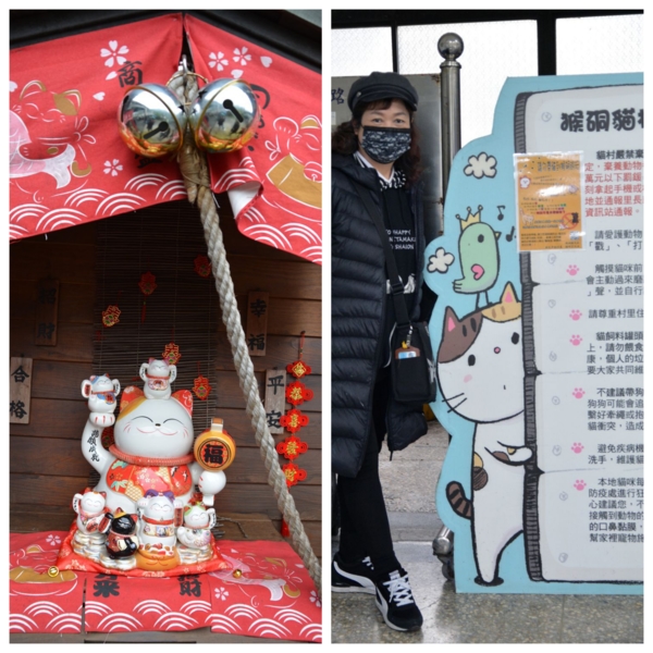 如今侯硐卻是以貓村著名,打從下車,一路上就見路上不斷出現貓的身影,我們同行的中心診所護士,馬上迴避,她說怕貓。而我家從小養狗,但都不是當寵物,而是養在院子當看家狗,最後一次家裡養一隻從出生抱來的狗,我太太一直陪伴著,善體人意盡忠職守,遇到郵差、送瓦斯的人,會狂吼狂叫,遇到來訪的客人穿著較整齊體面的,會跟著主人搖尾吧,還真有點勢利,哈!直到牠十六年的一天,壽終老死在院子,我太太還送去對街狗醫院厚葬,傷心異常,感情用的很深,從此就再也沒養狗了,倒是大女兒嫁出去至今還養狗,也因此我們家對貓沒什好感。