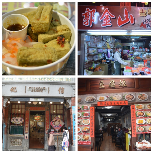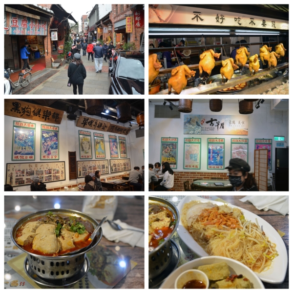接著約12:40趕到深坑,其實以前來過兩次,沒什麼印象,對於有名的深豆腐,我不喜歡那帶有木板的味道。如今再次重遊,每年市政府文化局都舉辦「深坑四寶文化節 」,深老街不一樣了,比九份還精緻,我真要再評估了。2008年起為重現深坑街早年古樸風貌,新北市政府將深坑街列於歷史風貌特定專用區,重現古蹟保留及現代生活的融合與共存,城鄉局針對騎牌樓保存與修復,復舊工程於2012年9月順利完工。深坑老街經過這幾年的復舊工程整修後,一整個變得古色古香、煥然一新,不但整體規劃變得更一致性,還多了騎樓可供避雨休憩!來到深坑老街就是要吃吃喝喝,到深坑後首先要到百年茄苳樹旁的「北一綠豆沙牛奶、仙草茶」買一杯涼的先。老街全長約三百公尺,以純手工製作的方式加以鹽滷的「深坑豆腐」聞名全國,現今隨處可見各式豆腐衍生商品,可是我吃過後,覺得我吃老街「古早厝」的炸臭豆腐,比麻辣鴨血蒸臭豆腐要好吃,蒸的臭豆腐不如台北的上海菜館,他的炒米粉也不錯。