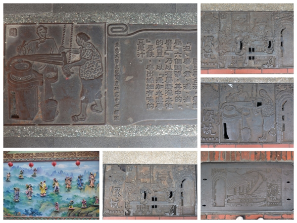 深坑陰溝蓋真是有看頭,地上的水溝蓋有電信、電力公司的人孔鐵蓋,都特別以銅製的老街街景來突顯深坑之美,真有心,古意盎然,有空得仔細看看。