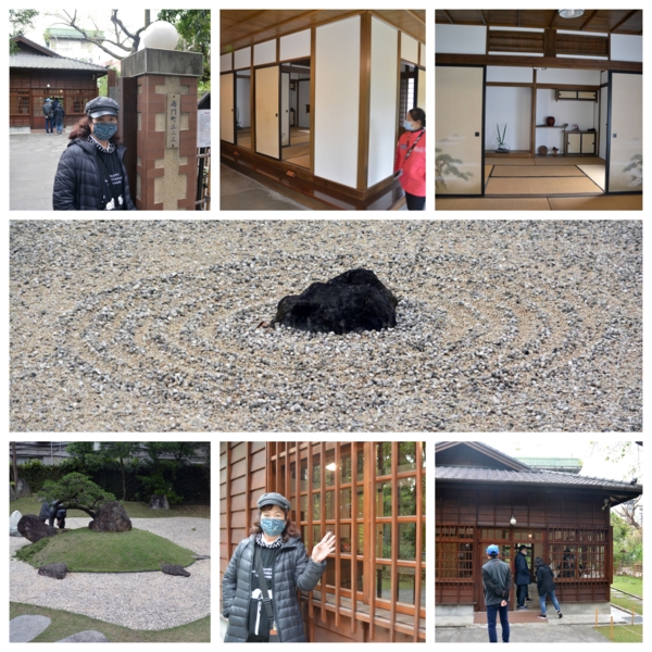 14:40回台北植物園,植物園自認非常熟,40年前我們漢光公司就在旁邊,每年都會到荷花池拍照,這次有導遊介紹,竟然孤陋寡聞,才知道進入園內仿日式木造平房南門町三二三及二級古蹟欽差行臺,原來自己才疏學淺不求甚解。南門町三二三在植物園荷花池的角落,不大,根本沒注意它,日本殖民時代約1930年代建造的木造平房,為林業試驗所宿舍,隨著最後一任居住於此的員工過世後,人去樓空,年久失修而逐漸荒廢。近年在郭中端和堀込憲二位設計師協助下,恢復舊有樣貌,榻榻米和日式庭園,做工木料非常精緻,並請由日本長野縣的小口基實先生設計日式枯山水庭園,稱禪花園,以堆疊有致的石塊代表「山」,大片面積的淺色碎石表現「水」,為日本佛教寂靜空靈的禪學觀極致表現,真是小而美。