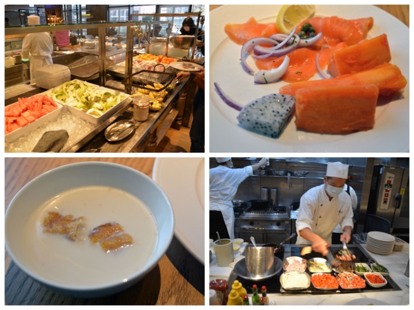 0130君悅酒店早餐,凱菲屋自助早餐沙拉百匯,0830就去吃,熱食區、現點現做料理、咖哩區、麥片與水果,麵包與甜點,我最喜歡煙燻鮭魚又大又厚,是我經歷過國內外酒店最棒的,限時一小時,時間有點不夠,超飽的。
