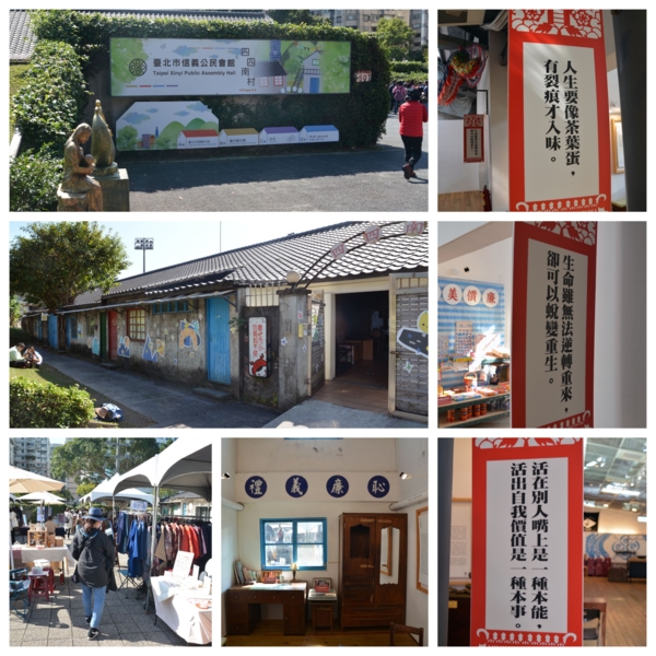 在101旁有四四南村觀光眷村,年輕人不少有著悠閒的看看,想著我們當年40、50時代住芝山岩眷村小時候,無限回味,只有雨聲幼稚園及雨聲小學同學才知道。建於1948年的四四眷村,已有73年的歷史,當初政府退到台灣時,村內居民全為聯勤第四十四兵工廠的廠工,為台灣第一座眷村,最早的分為東村、西村與南村,現東村與西村已拆除,僅保留住南村,這也是四四南村的名稱由來。他們是懷抱著一年半載後就能回到家鄉的希望堅持下去,但卻在這裡度過了他們的下半人生。改造眷村文物的博物館,訴說著這裡的老故事與展示古早的眷村文物,另一部分租給了文創商店,目前為文創經營,在文創小攤販遇到兩位黑白漂亮攤位小姐,她們互相不認識,分別徵求同意,黑白攝影留下句號。