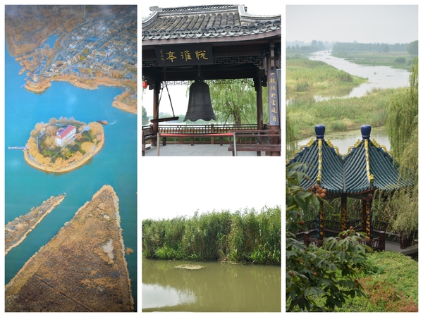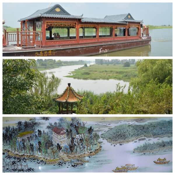 去九龍口景區,因九條河流匯聚一個小島而得名。九龍口由蜆河、林上河、錢溝河、安豐河、新舍河、溪河、莫河、澗河、城河等九條自然河道彙集而成,故名“九龍口”。九條銀河從東南西北不同方位蜿蜒而來,彷彿九條玉龍盤旋 在無邊無垠的綠色地毯上,無限綺麗的天光 湖影,盡收眼底。